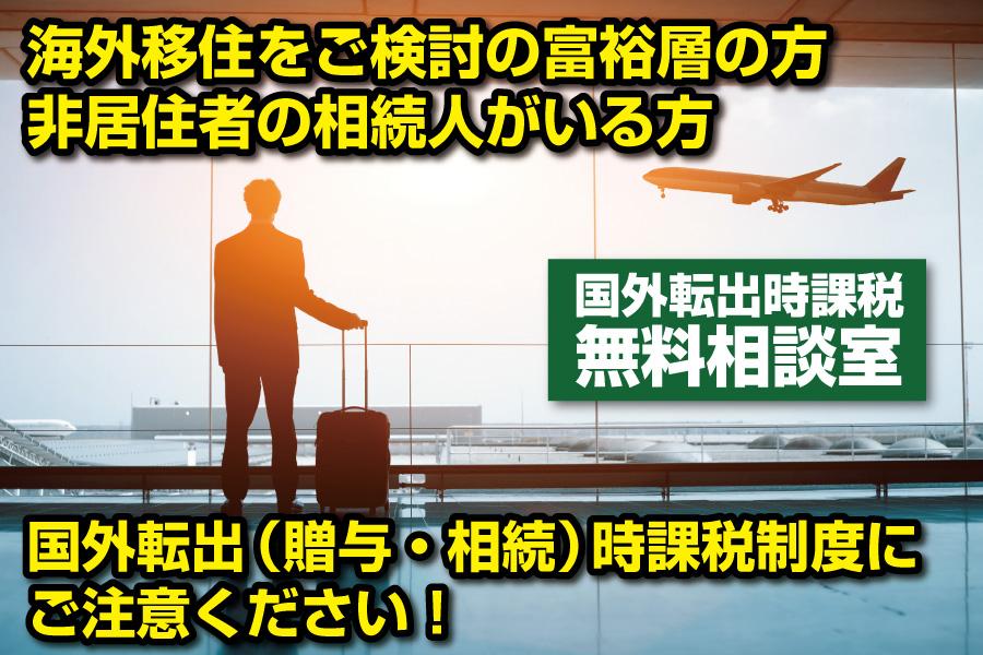 国外転出時課税の対象となるのは国外転出をする日前10年以内において、国内に5年を超えて住所又は居所を有する方で、所有等している対象資産の価額の合計が1億円上である方です。